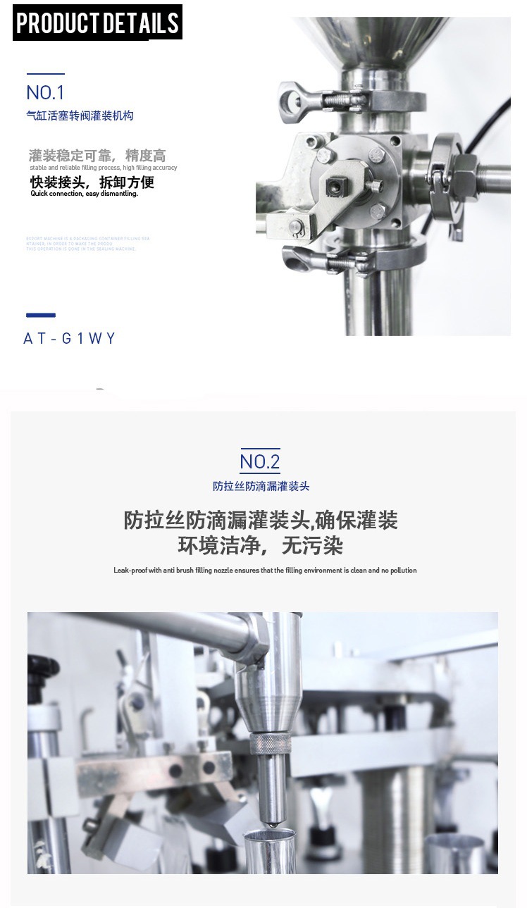 本系列產(chǎn)品是本公司專業(yè)為膏體,高粘度的灌裝設(shè)計(jì)的一款高新技術(shù)產(chǎn)品,旋轉(zhuǎn)式定位。適用于牙膏軟管,藥膏,化裝品軟管等膏體自動(dòng)灌裝,可根據(jù)物料粘度選擇加熱方式,本機(jī)裝有