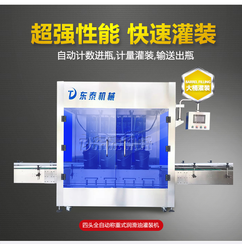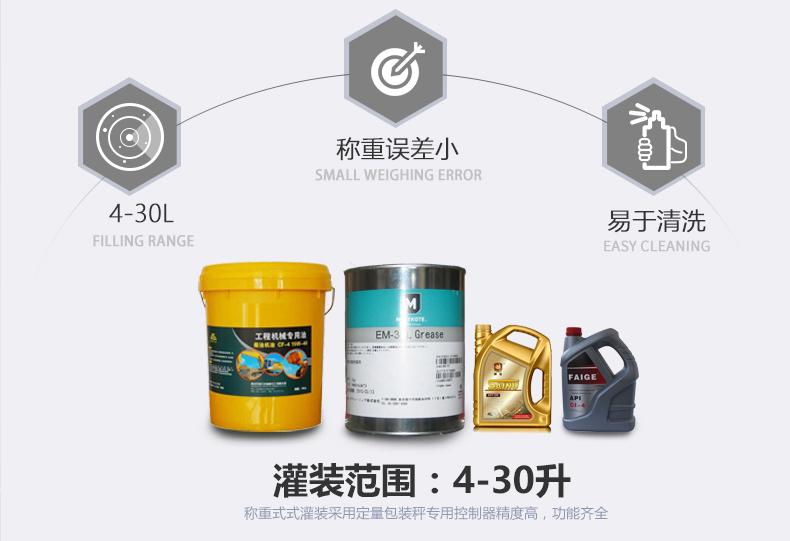 機(jī)油灌裝機(jī)適用于對4kg-25kg汽車用品類產(chǎn)品:潤滑油、防凍液、車用尿素等液體灌裝。自動完成計數(shù)進(jìn)瓶、計重量灌裝、輸送出瓶等一系列操作。 特別適用于潤滑油、水劑、食用油的定量灌裝,是食品,醫(yī)藥,化妝品以及精細(xì)化工等行業(yè)的理想灌裝機(jī)。本機(jī)采用可編程控制器(PLC)、高速工控組態(tài)軟件進(jìn)行實(shí)時監(jiān)控的控制,使用調(diào)節(jié)方便。整機(jī)按GMP標(biāo)準(zhǔn)要求制作,各管路連接采用快裝方式,拆卸清洗方便,與物料接觸部位及外露部位均采用不銹鋼制造。整機(jī)安全、環(huán)保、安全、美觀、能適應(yīng)各種不同環(huán)境工作。